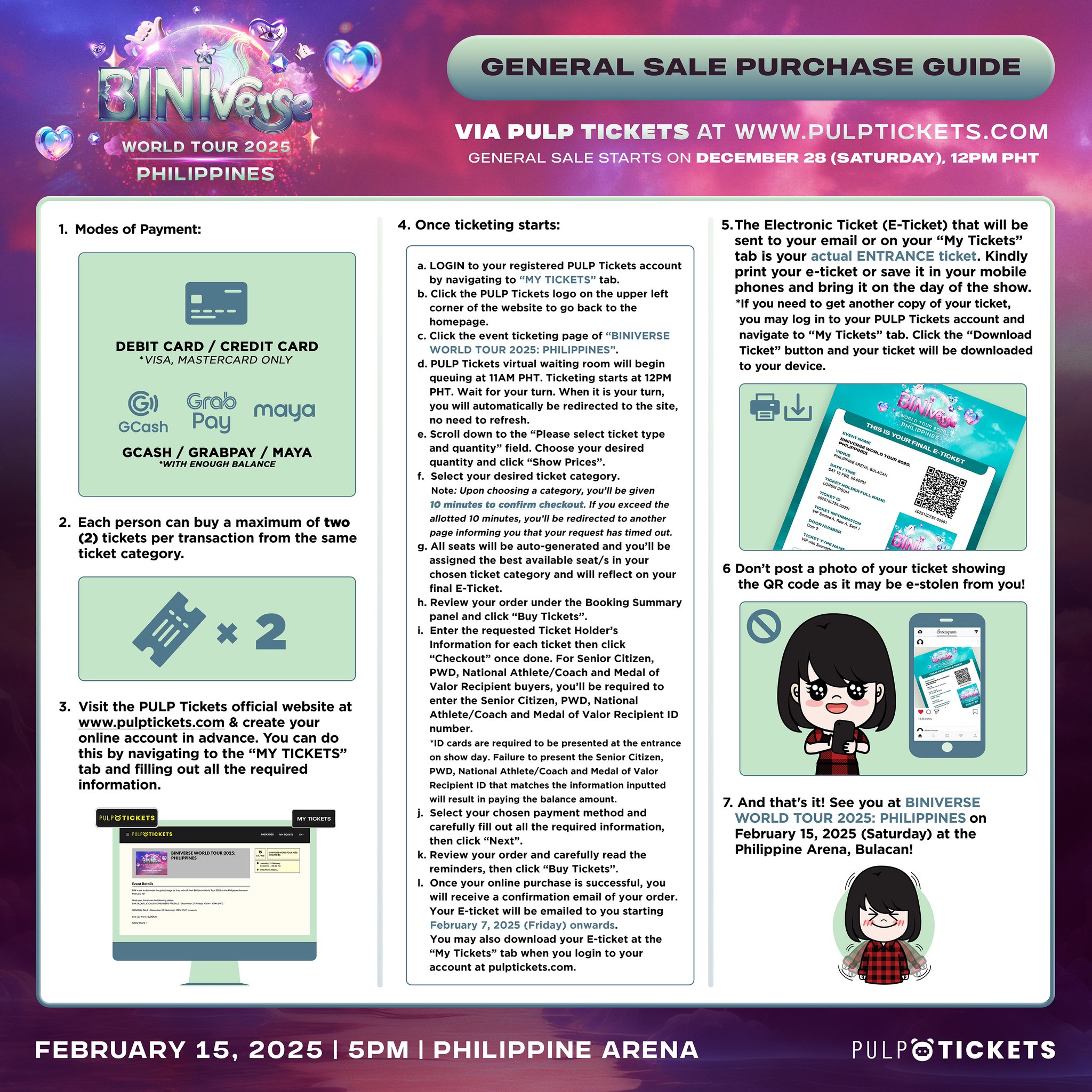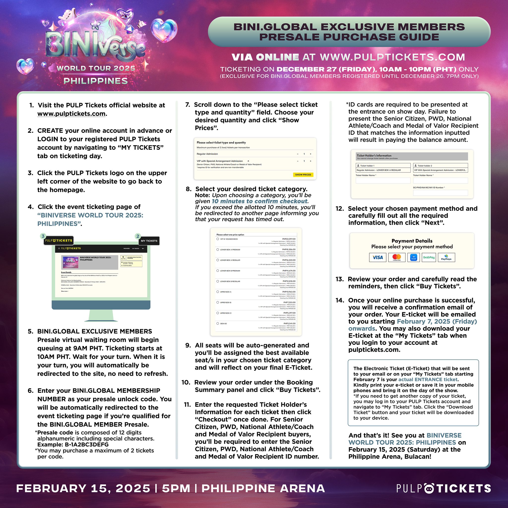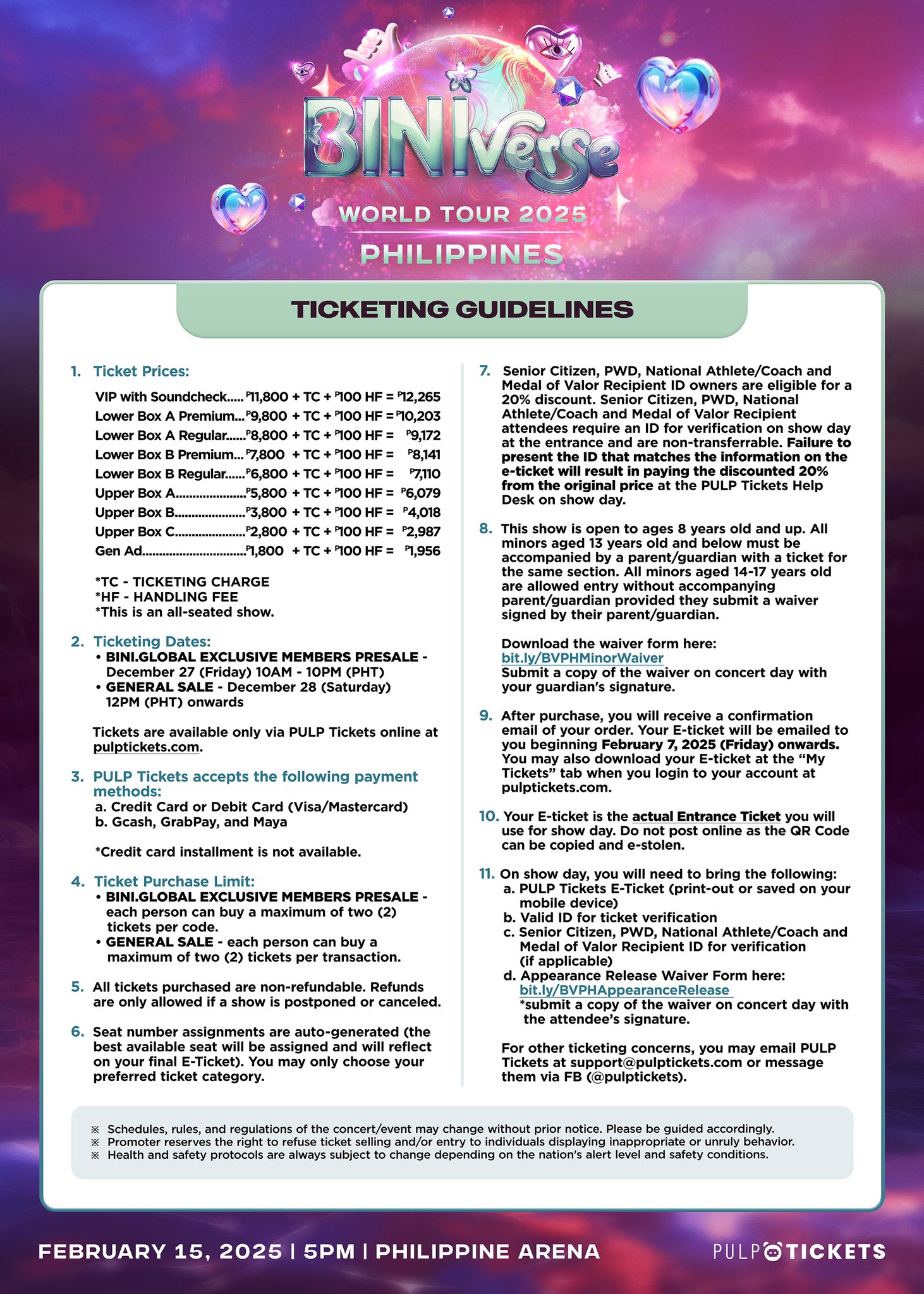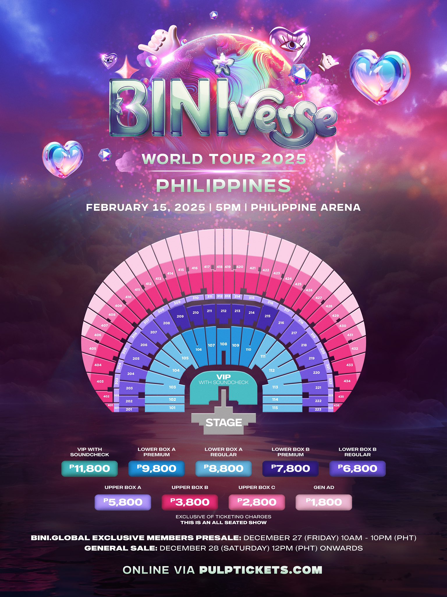 NOTE: We highly suggest flexibility when it comes to choosing your back up seats so you can have higher chance of attending the concert. We will, however, do our best to secure your desired seats and add back ups in case there would be errors.